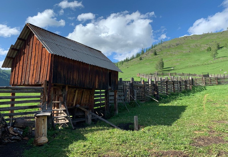 Загон (парк) в верховьях Бухтармы. На переднем плане сушилка