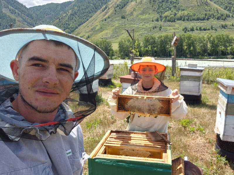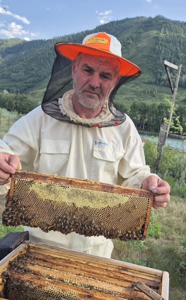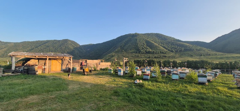 Летом ульи вывозятся на медосбор в урочище Актомар, известное своим богатым разнотравьем, на высоту 1780 метров над уровнем моря. С этого места открывается великолепная панорама – в обзор на 360 градусов видны все высочайшие вершины: пик Музтау – Белуха, хребты Сарымсакты и Листвяга.