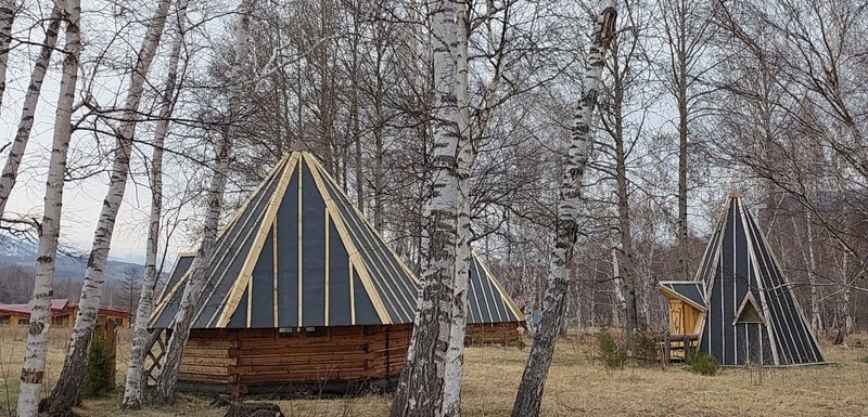 Гостевые домики, стилизованные под алтайские аилы