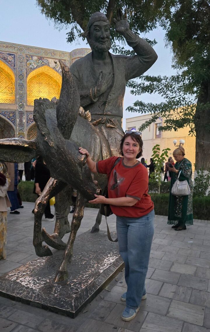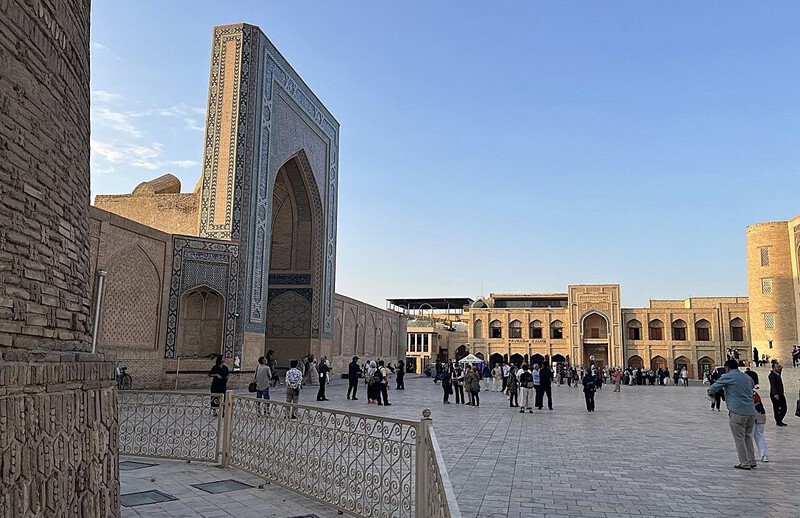 …Наше знакомство с Бухарой началось накануне с посещения с исторических памятников, расположенных в самом сердце города. Первым пунктом стала мечеть Боло-Хауз, построенная в 1713 году у подножия цитадели Арк, рядом с площадью Регистан. Комплекс включает мечеть, минарет и хауз – водоём, служивший резервуаром питьевой воды.