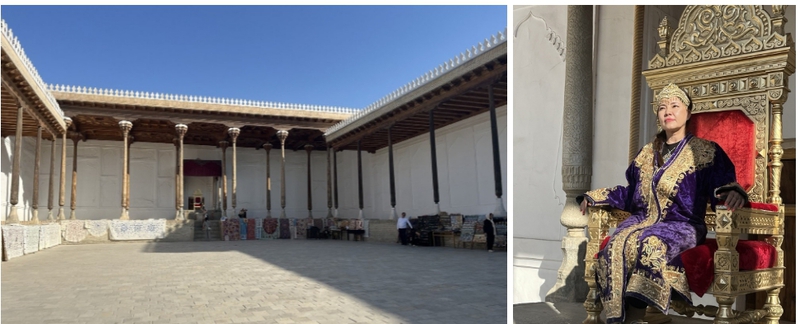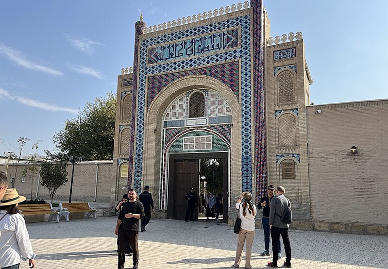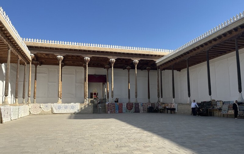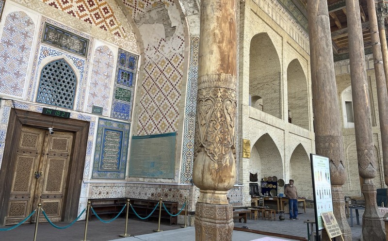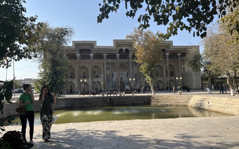 …Наше знакомство с Бухарой началось накануне с посещения с исторических памятников, расположенных в самом сердце города. Первым пунктом стала мечеть Боло-Хауз, построенная в 1713 году у подножия цитадели Арк, рядом с площадью Регистан. Комплекс включает мечеть, минарет и хауз – водоём, служивший резервуаром питьевой воды.