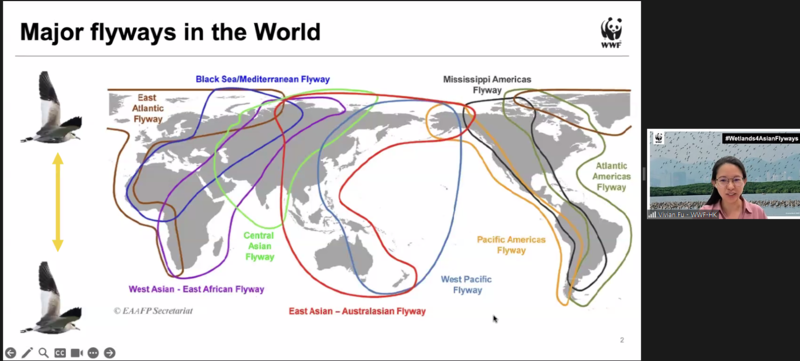Также в онлайн формате старшим менеджером WWF в Гонконге Вивиан Фу (Vivian Fu) была представлена презентация «Азиатские миграционные пути и роль водно-болотных угодий в их сохранении».