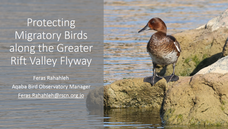 В онлайн формате была представлена презентация «Афро-евразийский миграционный путь и природоохранные инициативы». Подготовил её менеджер орнитологической обсерватории Акаба, Королевского общества охраны природы Иордании, Ферас Рахалех (Feras Rahahleh).